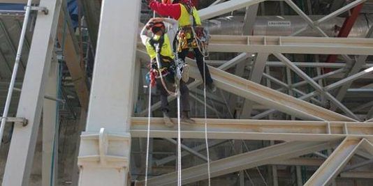 בעבודות גובה בשונה מטיפוס אתגרי תיירותי משתמשים במערכת כפולה של חבלים.